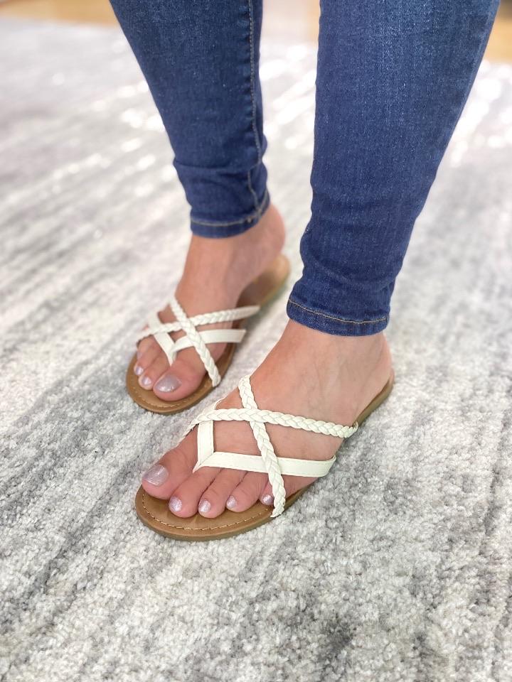 Now Trending: Barely There Sandals. Get the look with our Wear Now Wear Later White Sandals for the ultimate effortless chic.