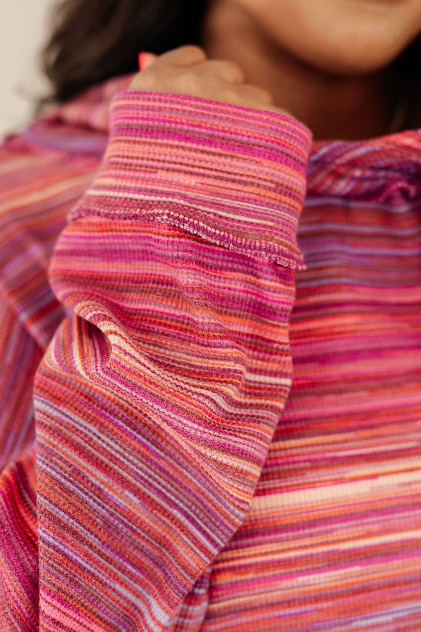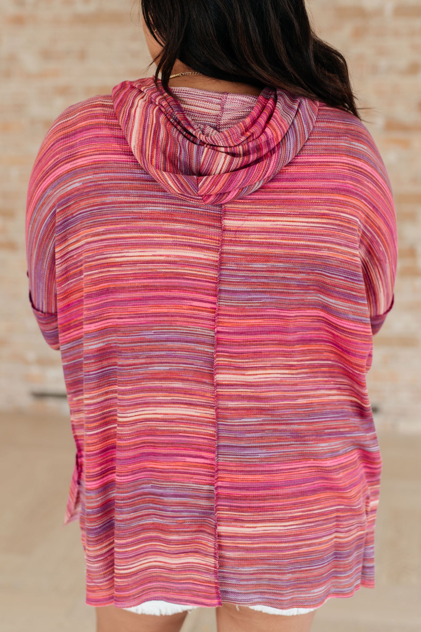 Step up your hoodie game with our Changing It Up Pullover! Lightweight waffle knit keeps you cozy, while the hood, drop shoulder, and kangaroo pocket add practicality. Banded cuffs and a stepped hem give it a stylish twist, with exposed seams for added flair.
