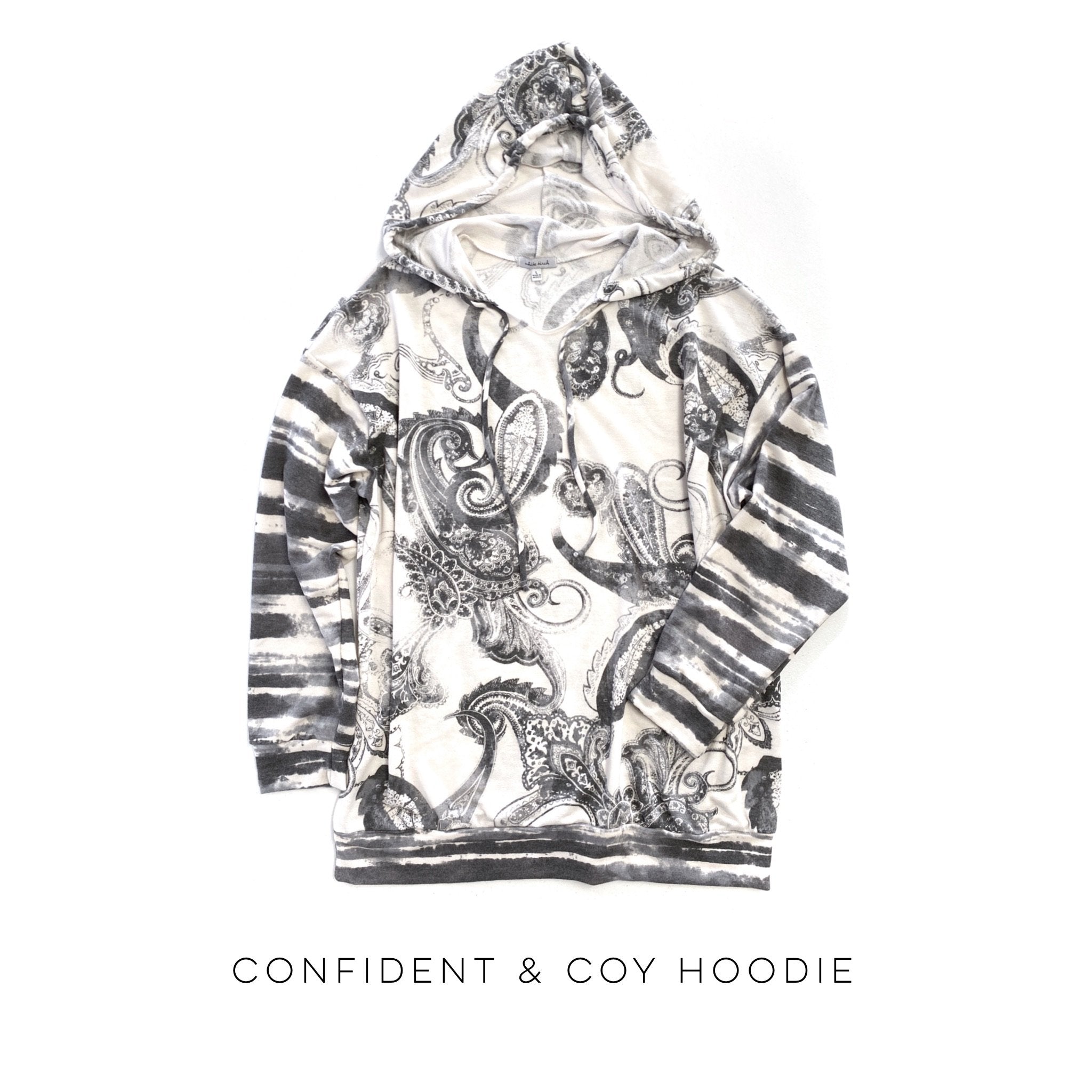You're sure to feel confident & coy in this new unique hoodie! Pair with your favorite leggings or Judy Blue jeans to make a statement.