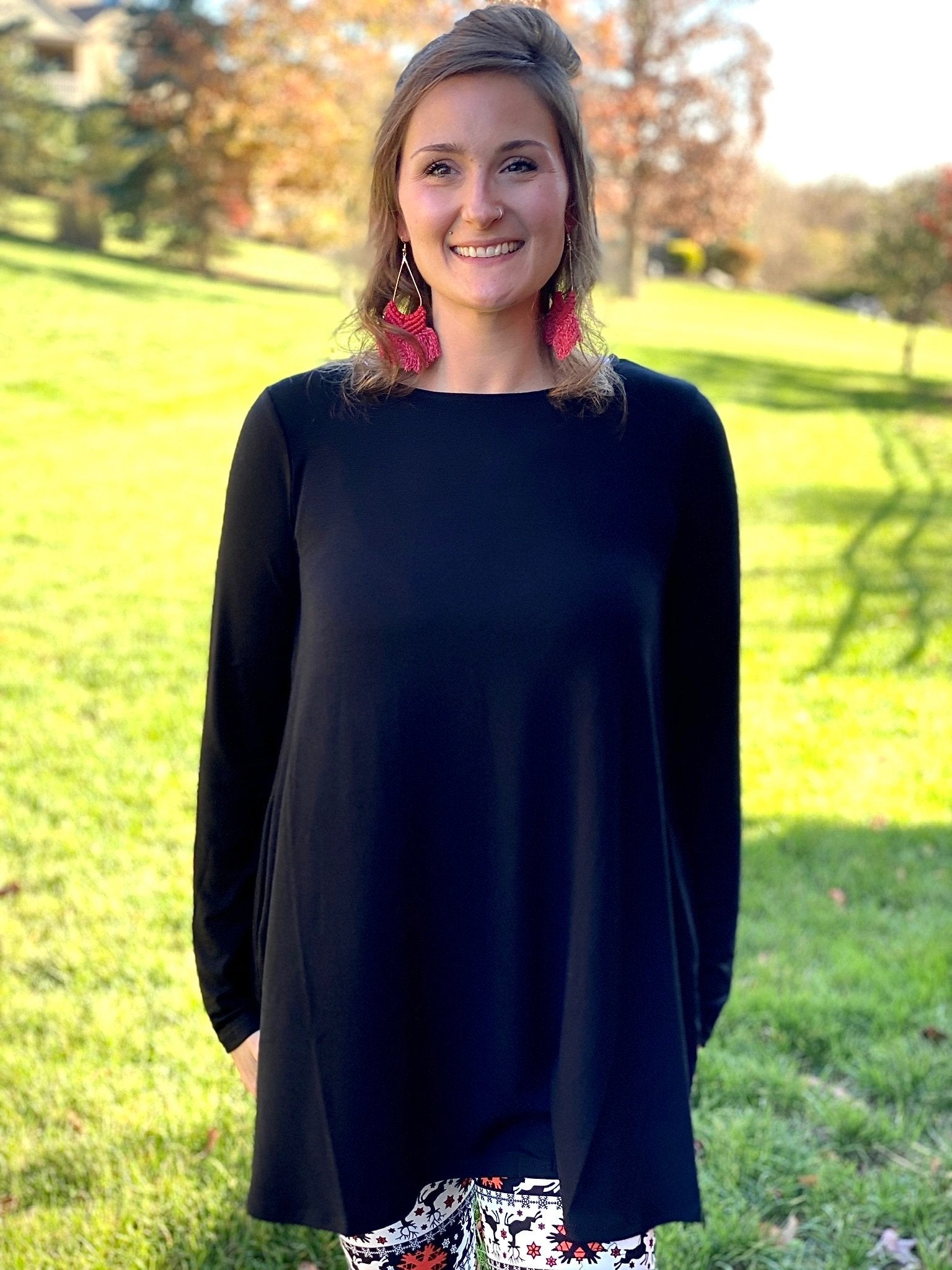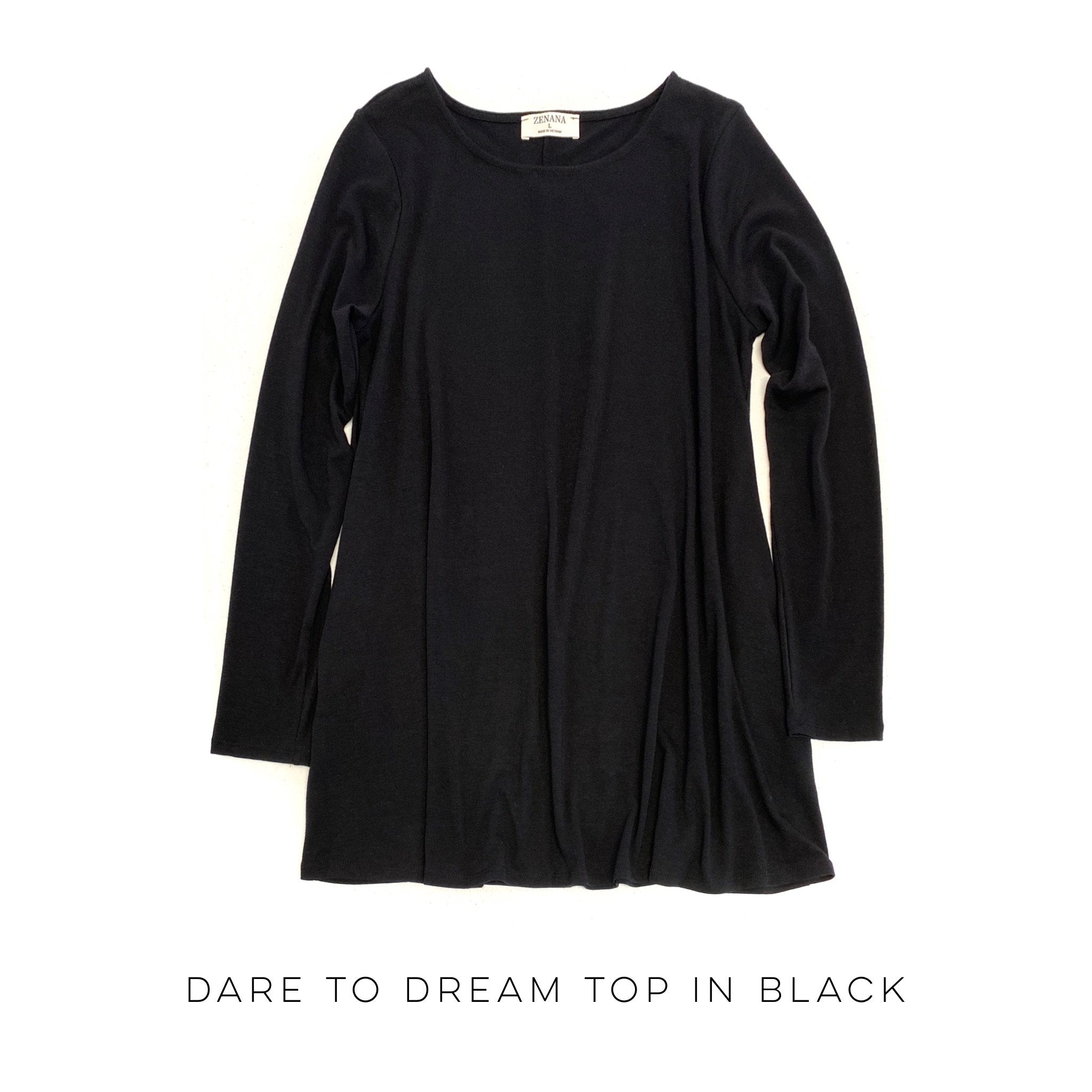 This flowy and fun top will have you daring to dream big dreams every time you wear it! Style with your favorite skinny jeans or comfy leggings for a cozy and stylish look that will carry you through the season.
