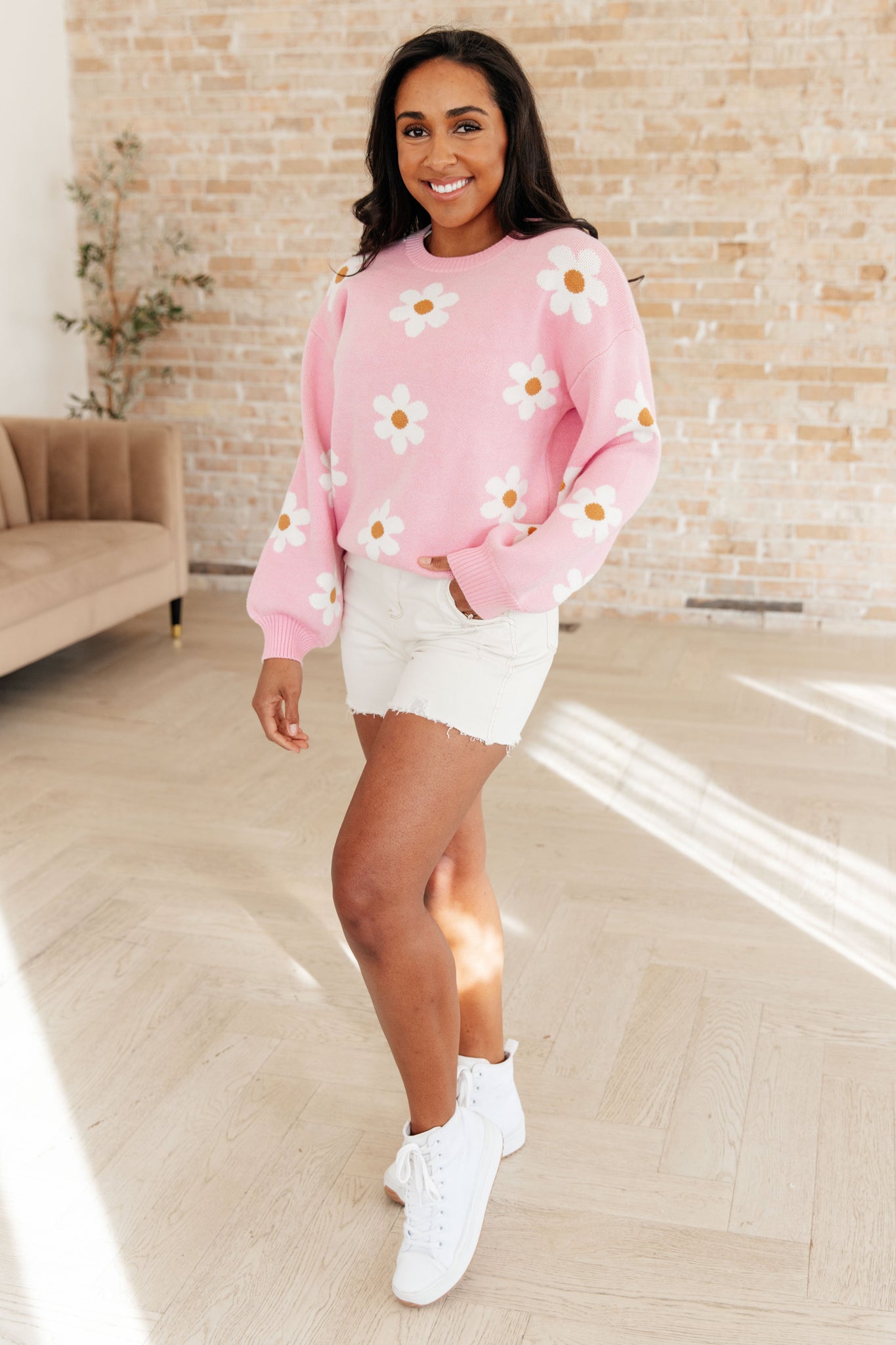 Stay cozy and carefree in our Don't Worry About a Thing Floral Sweater! Made from a medium weight sweater knit, it features drop shoulders and a ribbed neckline, hemline, and sleeve cuff. Perfect for adding a little playfulness to your wardrobe.