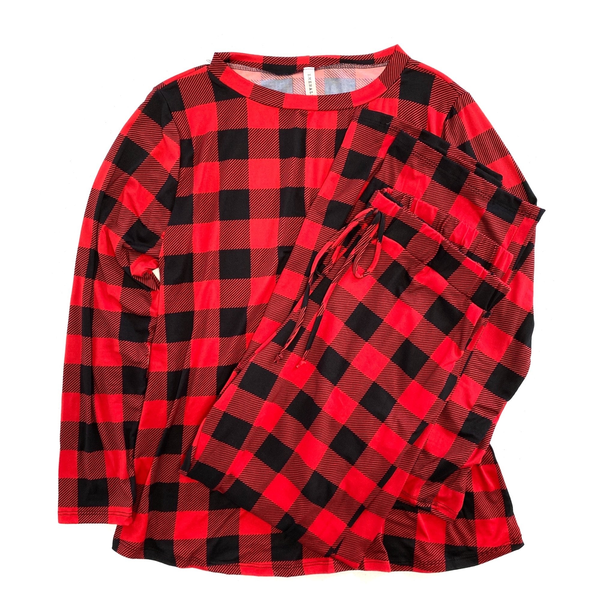 This buffalo plaid lounge top is as comfy as they are trendy! This must have piece pairs perfectly with a pair of solid leggings or our matching Just For You Plaid Lounge Pants.