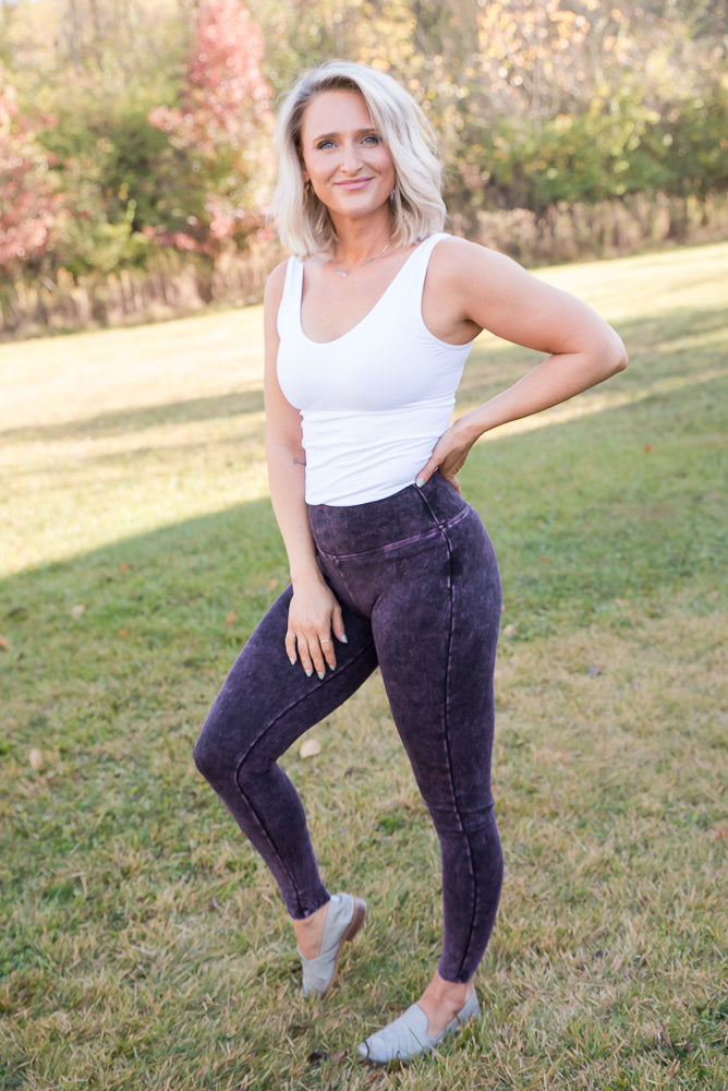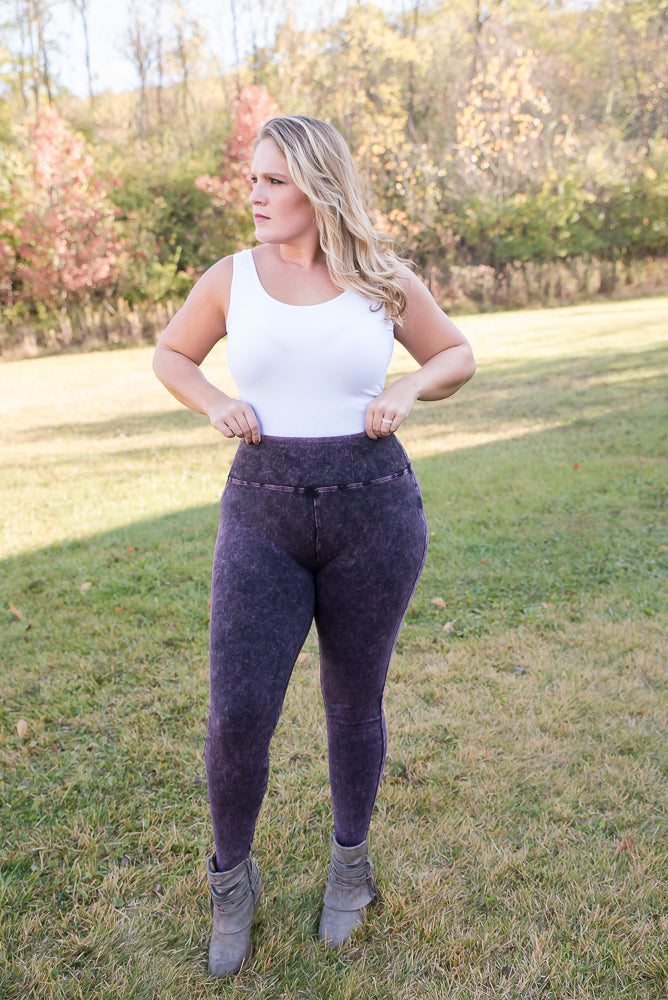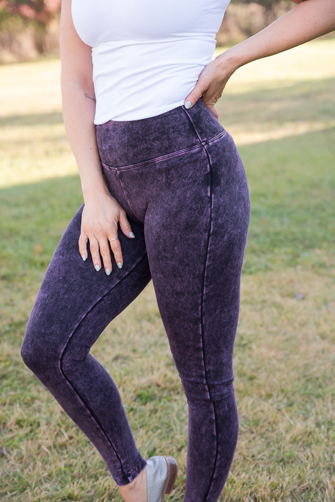 Style your graphic tees or favorite tops with these mineral washed leggings throughout the year. Your casual outfits will get a fresh, new look with these leggings.