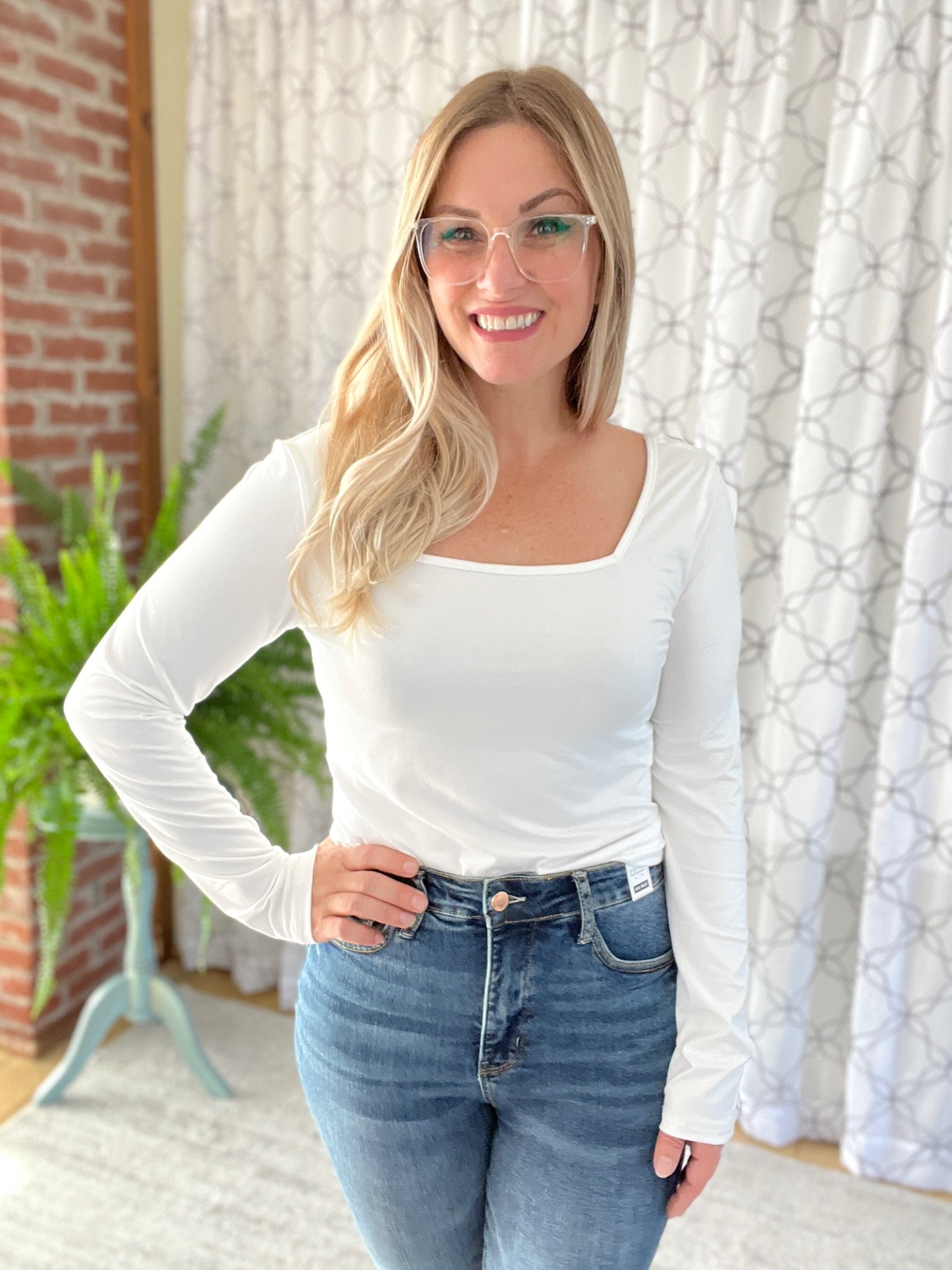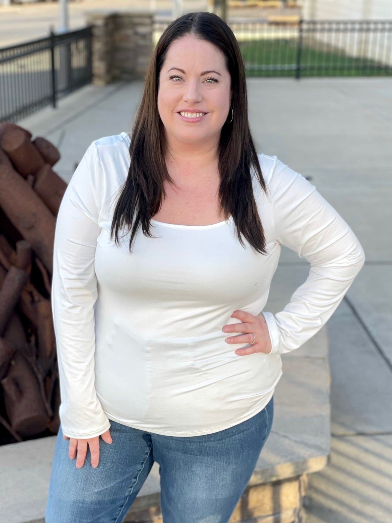 The square neckline provides an elegant look that is sure to compliment your style! The solid ivory top is a versatile piece that you can easily wear throughout the seasons. Wear this soft top on its own or layered with a shacket or cardigan.