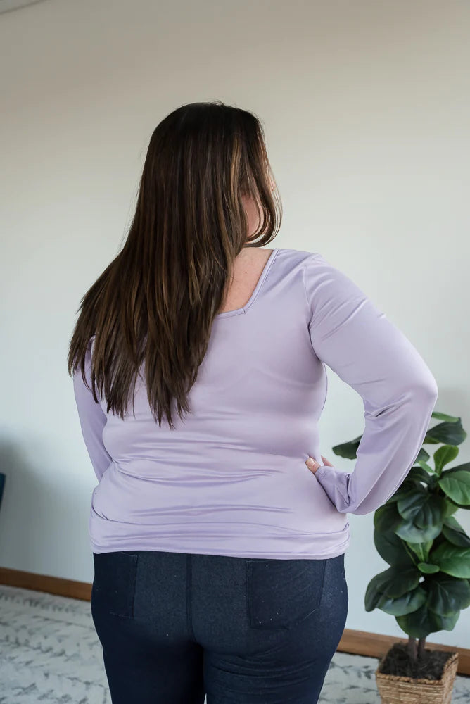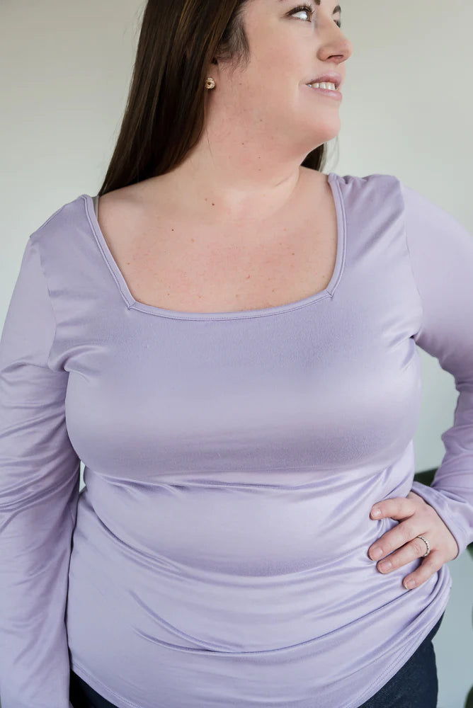 The square neckline provides an elegant look that is sure to compliment your style! The solid lilac top is a versatile piece that you can easily wear throughout the seasons. Wear this soft top on its own or layered with a shacket or cardigan.