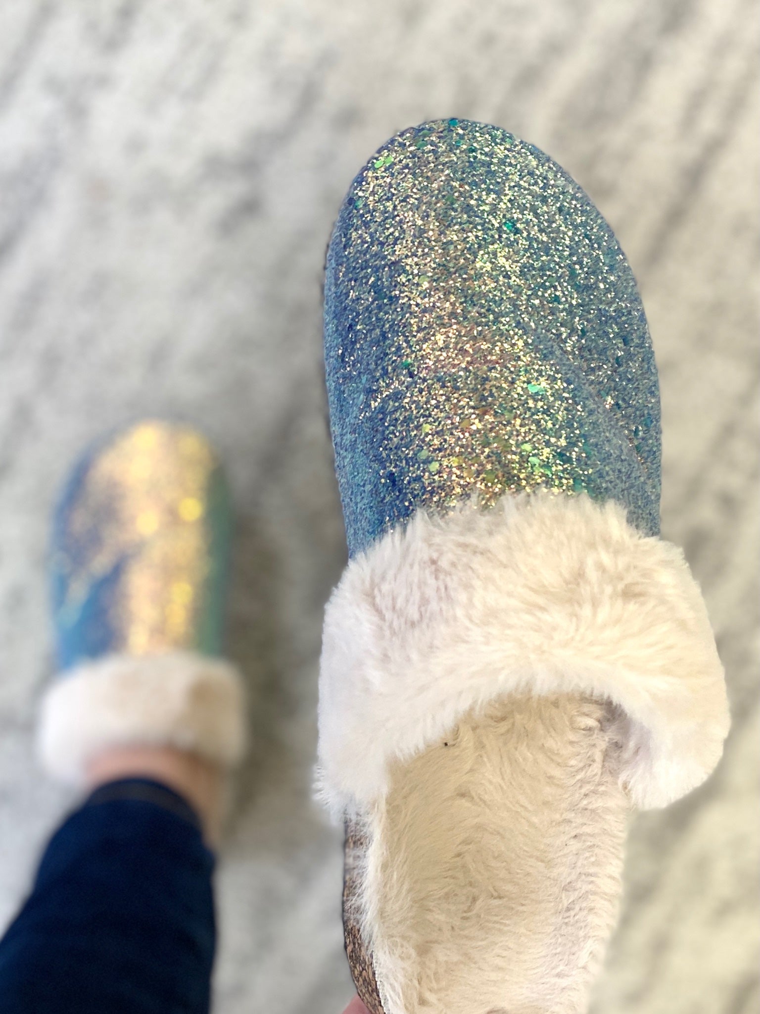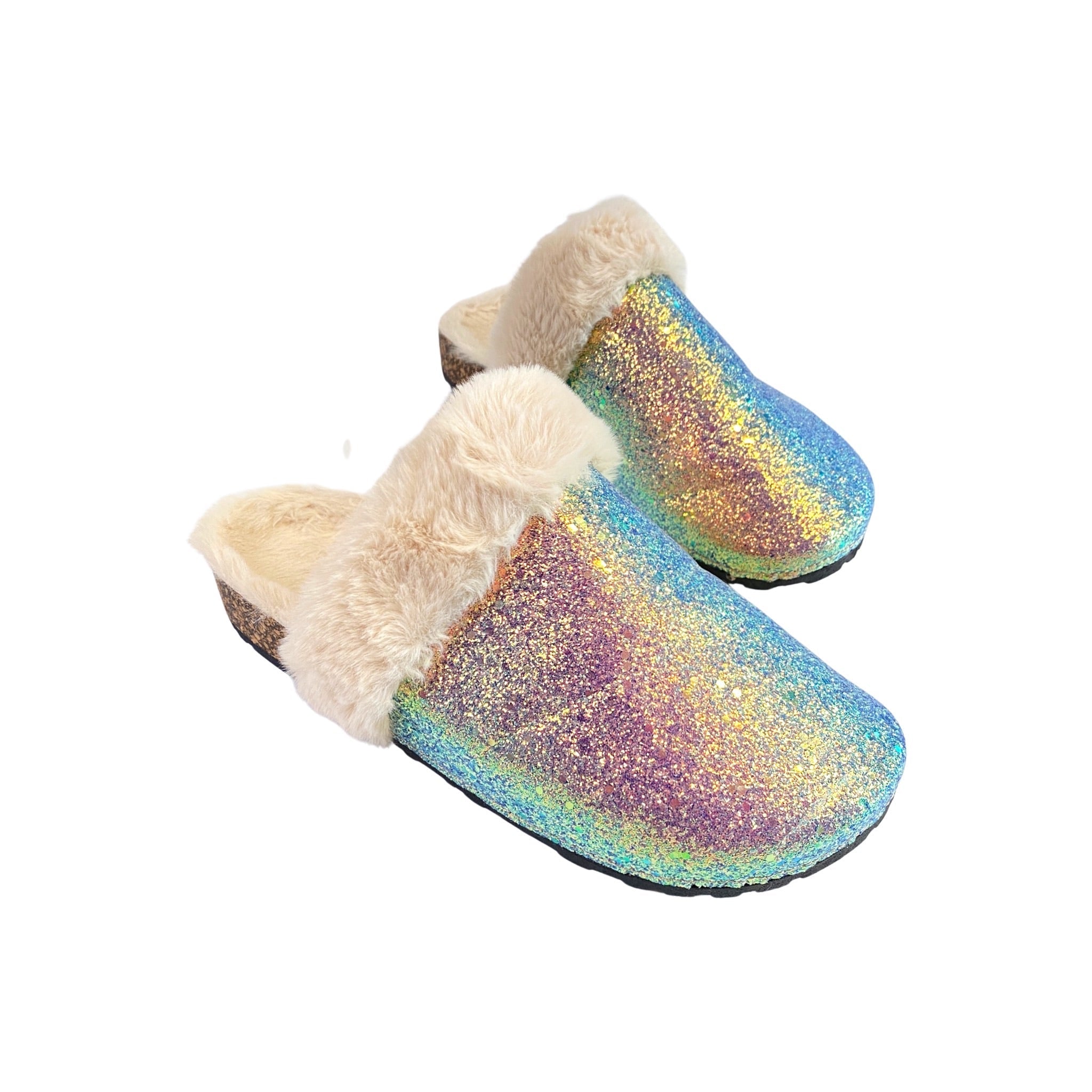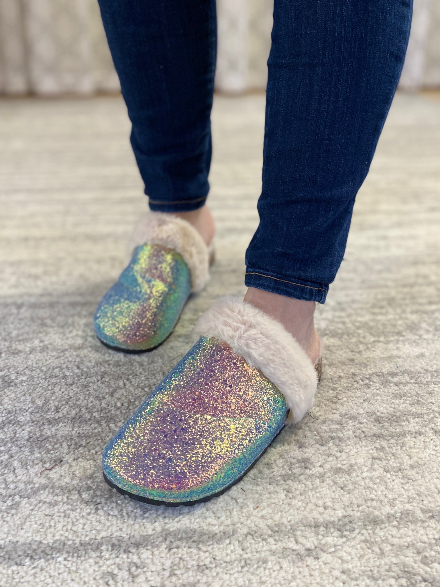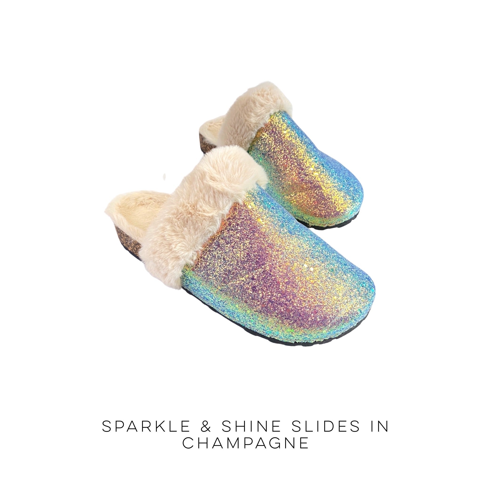 Add some sparkle to your outfit with these fur and glitter slides! Wear these any day of the week for a fun look you'll love.