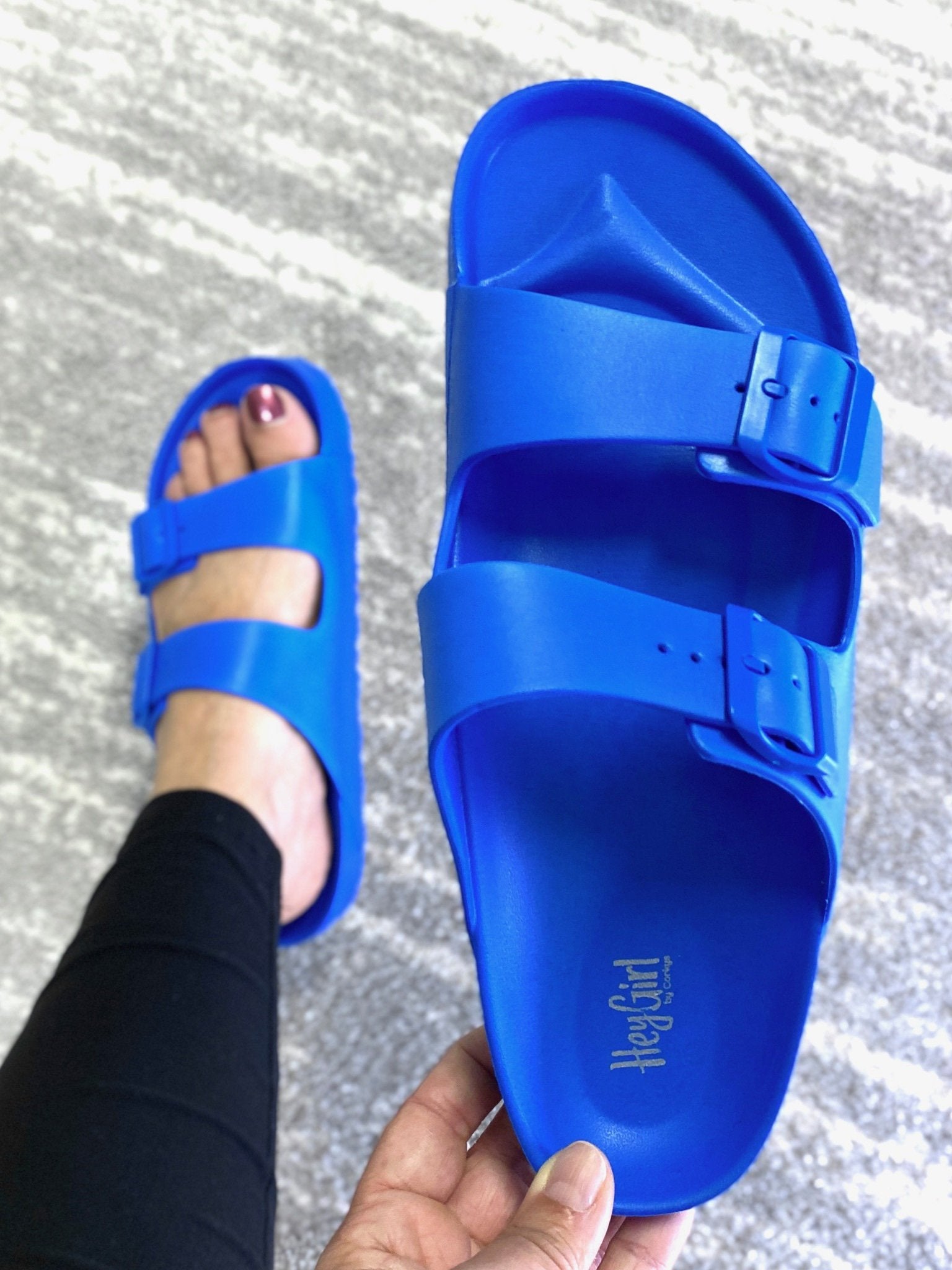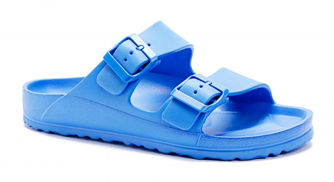 Show off your style with these fun and comfortable blue Corkys waterslides.  Wear at the pool, beach, or any day for the perfect warm weather style for you.