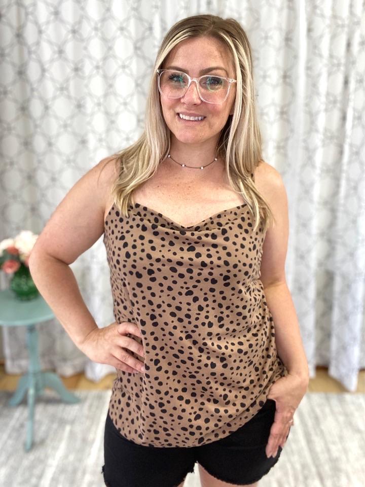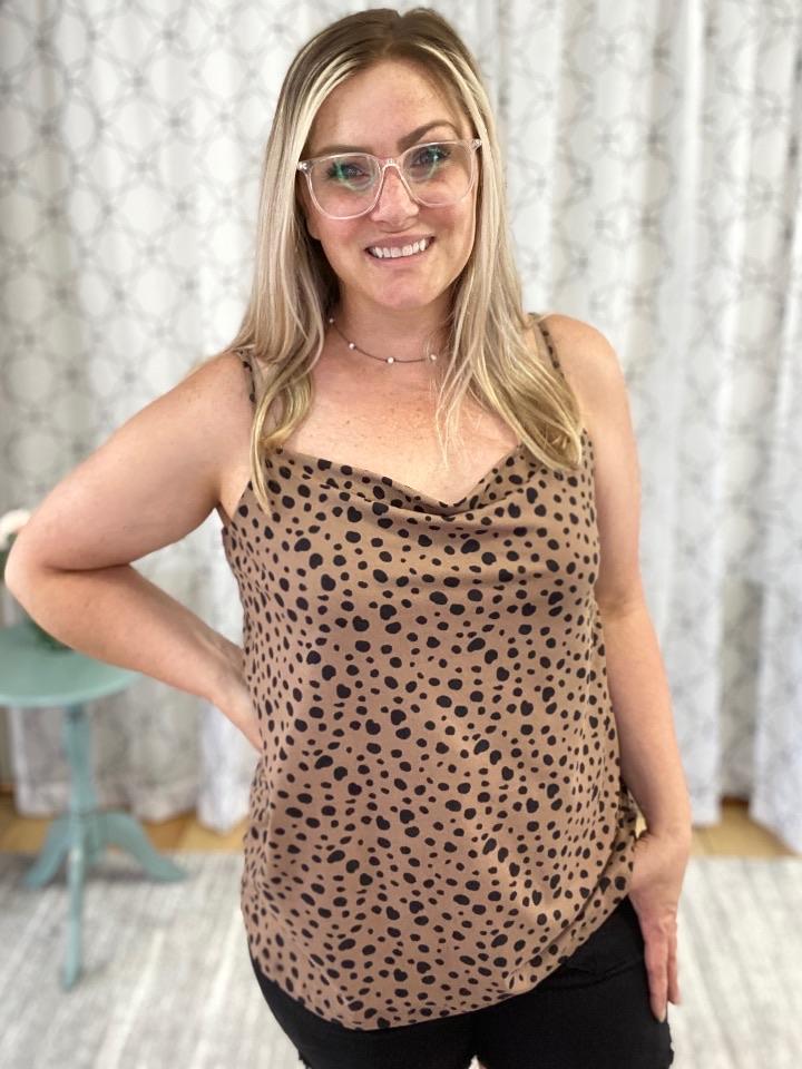 This gorgeous spotted knit tank offers the perfect style for any day! Wear as is in the warmer months or with a classic black cardigan in the cooler months for an amazing look that truly spans the seasons.